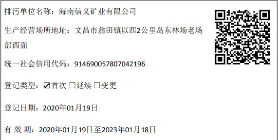 名 称:海南信义矿业有限公司认 证:工商信息已核实
